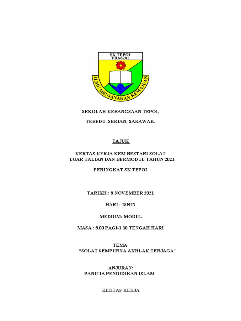 Kertas Kerja Kem Bestari Solat Secara Luar Talian 2021 Pdf